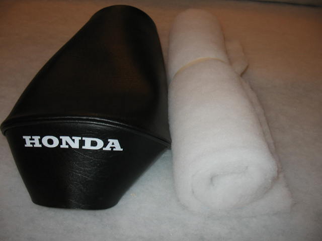 HONDA CT70 SEAT COVER 1980 - 1982 1991 - 1994 Part# CT70SC8094 COMPLETE WITH SILK SCREENED HONDA LOGO and 1/2" LAYER OF TERELYENE FOAM (in case your seat foam is damaged, this smooths it out) and installation instructions. Photo above is the cover on a completed seat GREAT PRICE!!