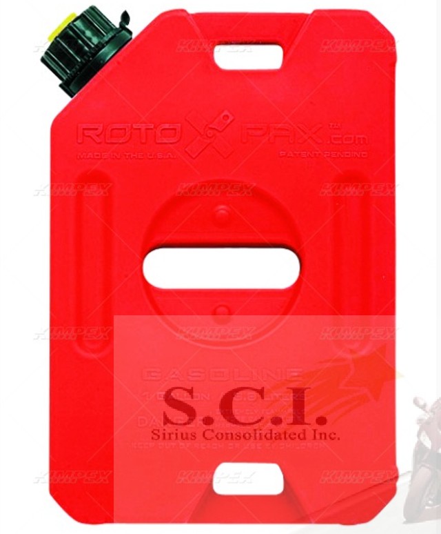 ROTOPAX 1 Gallon Gasoline CAN Part# 175100 PROUDLY Made in the USA!! Dimensions 9 1/2 L x 13 1/4 W x 3 H Red gas container only, mounting kit sold separately, Spout included Roto-molded gas can that is durable with thicker walls and stronger construction make it leak-proof along with a sure seal gasket to guarantee your spout wont leak or vibrate loose. Rotopax are the only EPA and CARB compliant containers available for sale in the United States. This is thanks to a patented three layer Roto-Molding process, along with specialty formulated plastic barrier material to meet the governments new extremely low permeability requirements.